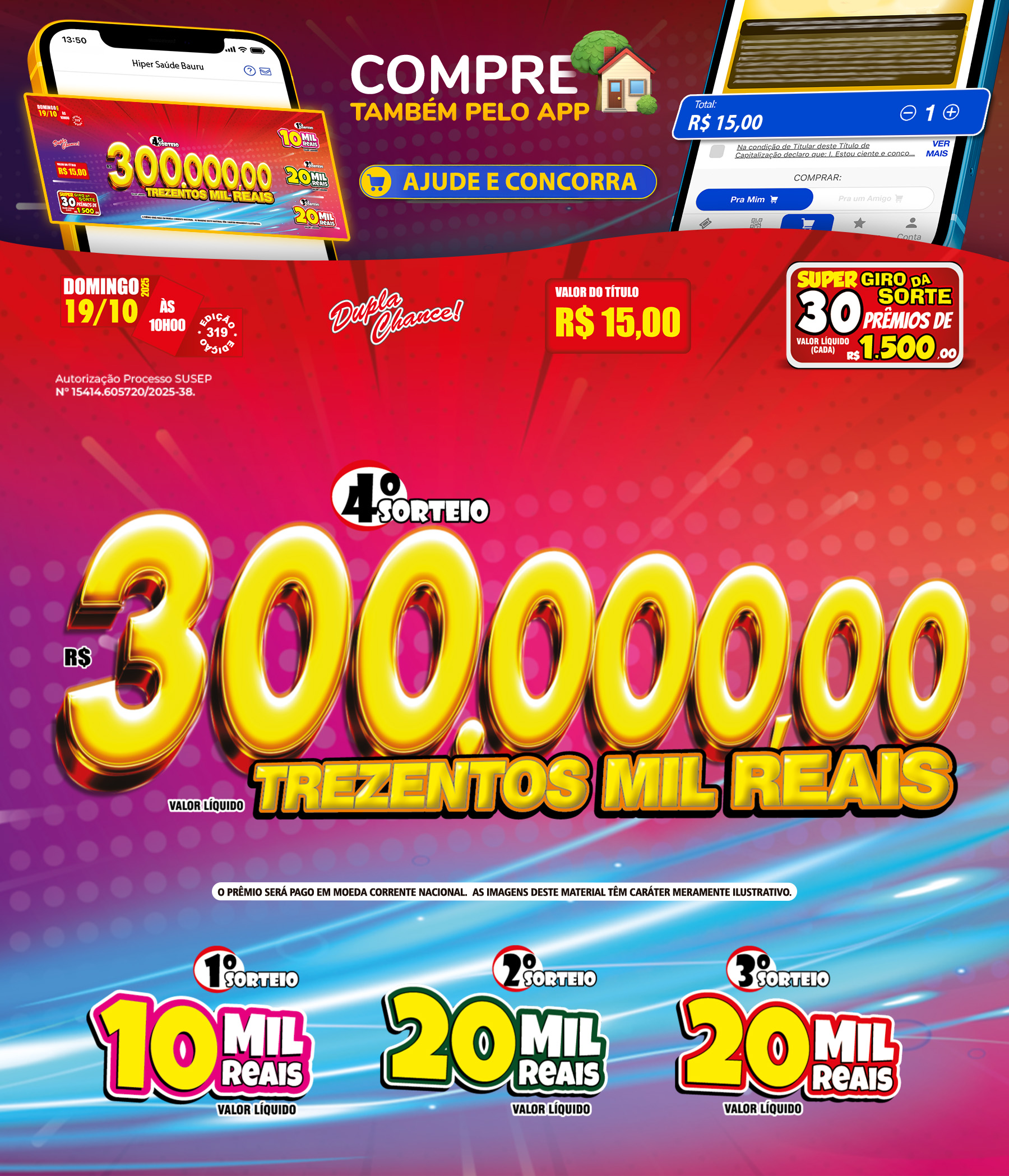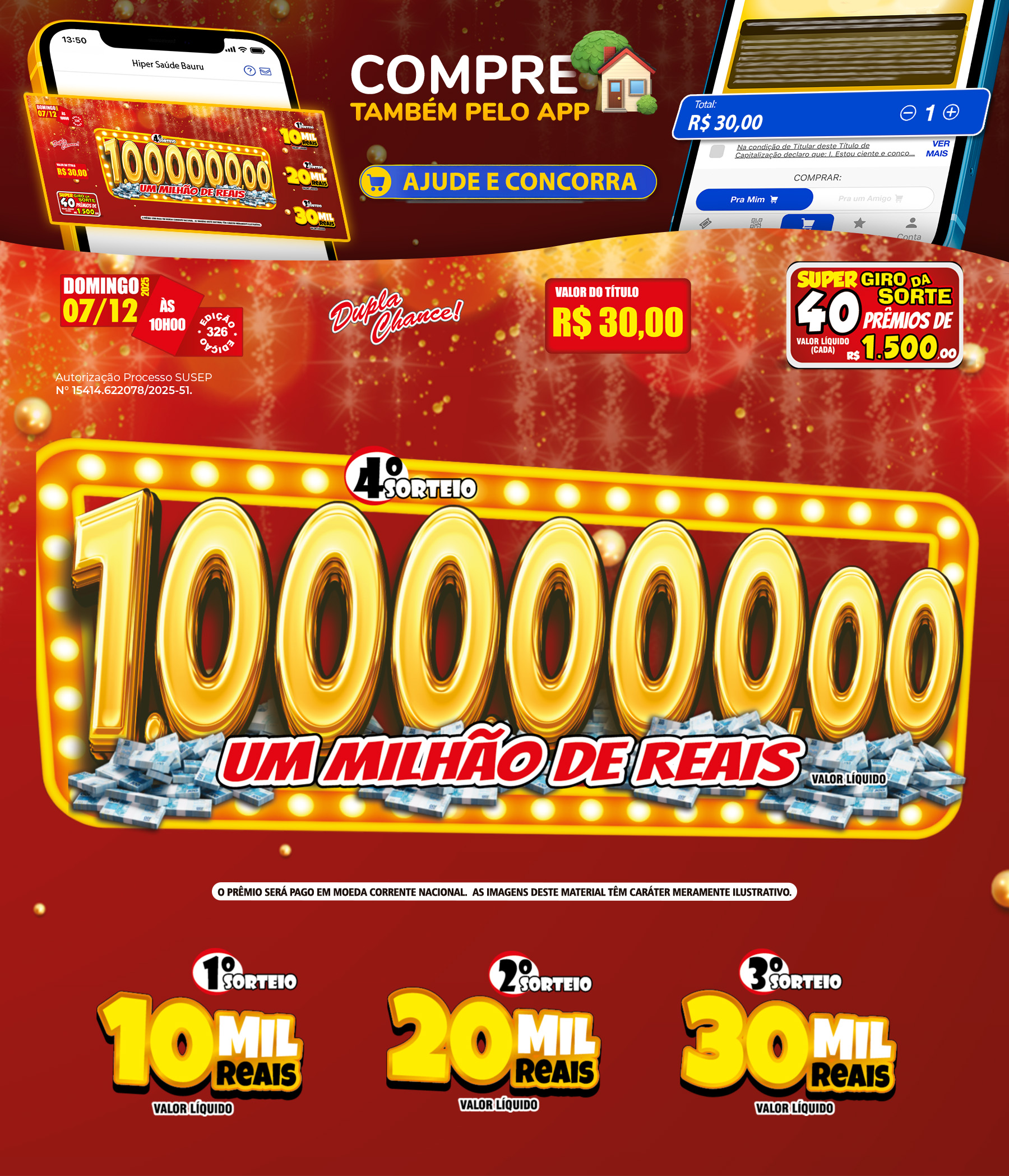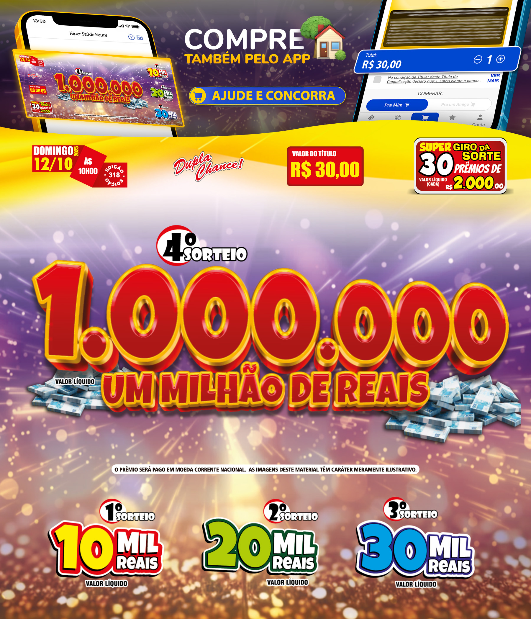 Compre seu título até as 23:59 do sábado sem sair de casa em apenas alguns passos 📲 Além disso, você pode acompanhar ganhadores, novidades e muito mais sobre o Hiper Saúde Bauru! Baixe já 🍀