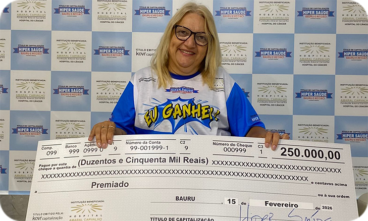 Além de concorrer a valiosos prêmios, você ajuda o Hospital Amaral Carvalho, cedendo o direito de resgate do título.