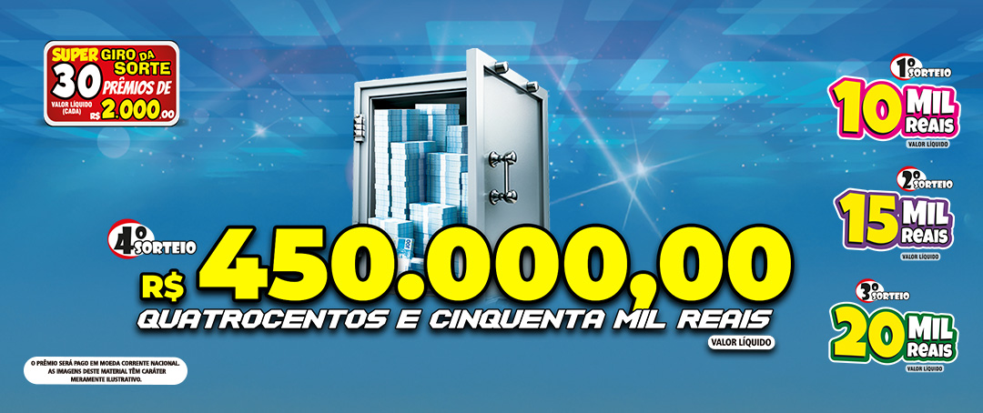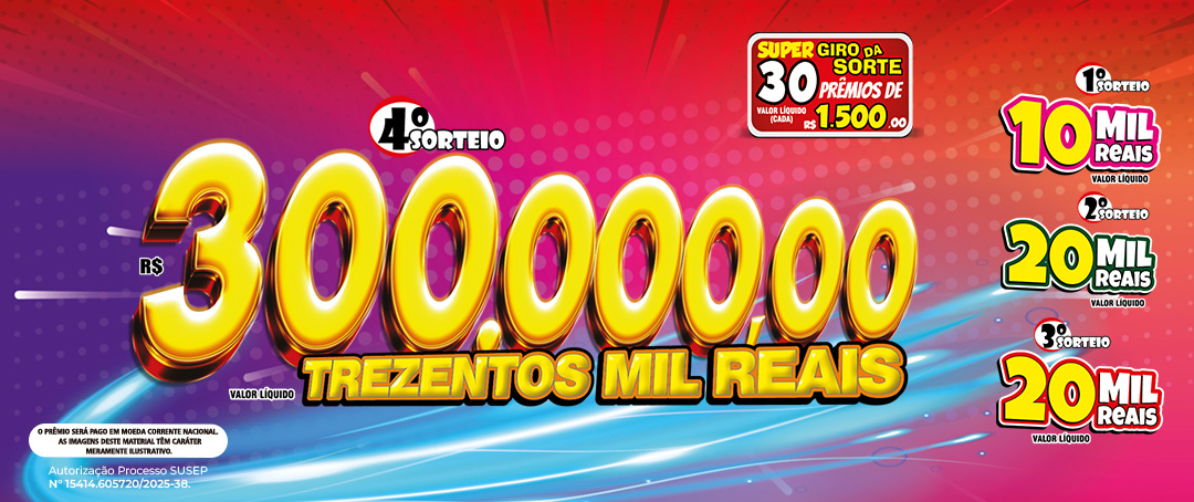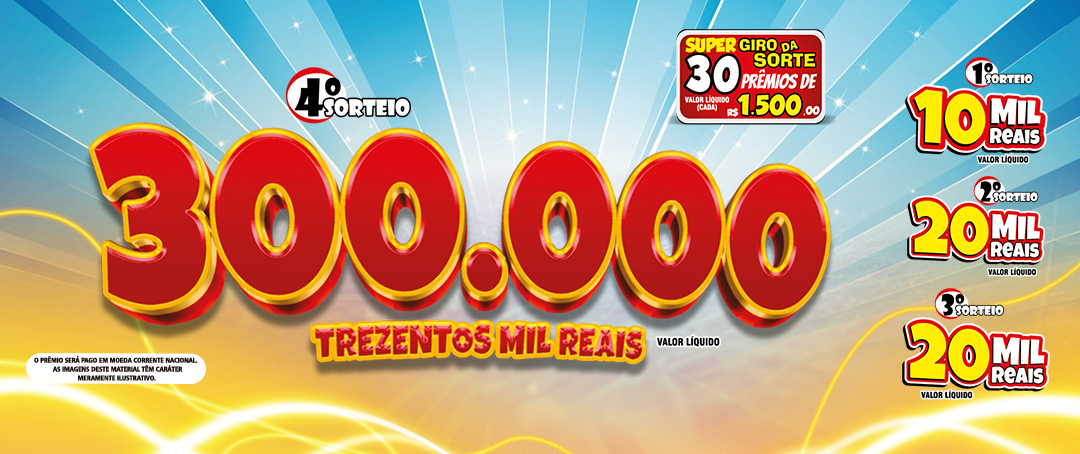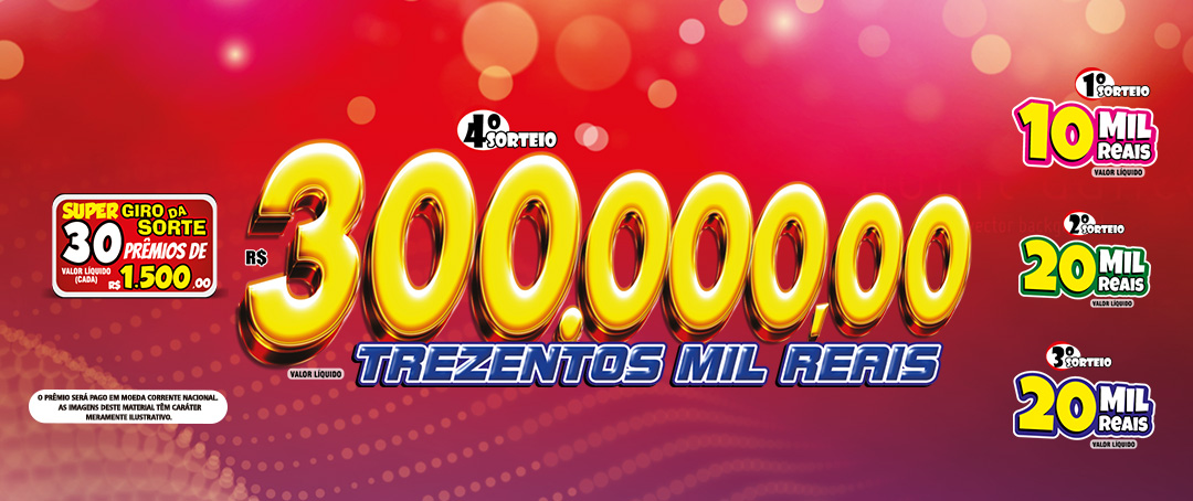 30 PRÊMIOS DE R$ 1.500,00 (cada) - Valor líquido