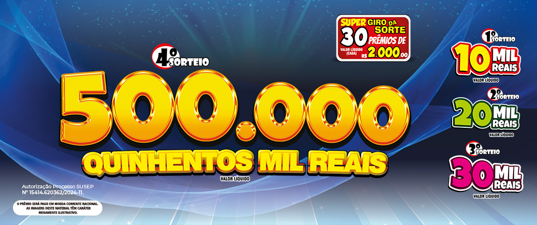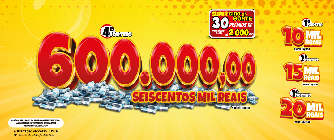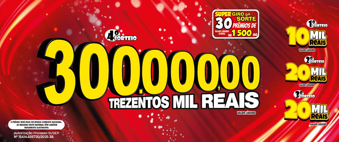 30 PRÊMIOS DE R$ 2.000,00 (cada) - Valor líquido